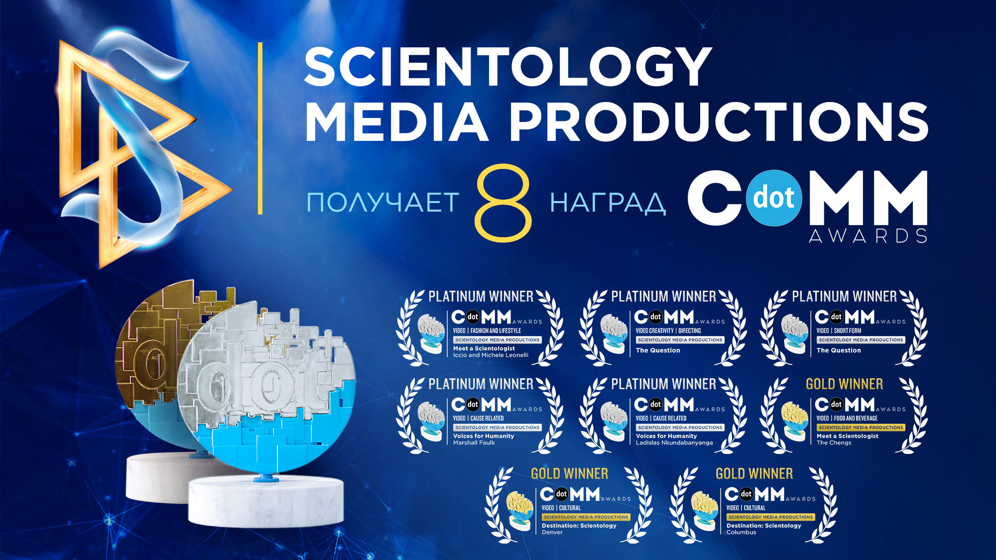 Scientology Media Productions получила восемь наград на конкурсе dotCOMM Awards 2025, в том числе пять платиновых наград, за впечатляющее повествование и инновационное производство.