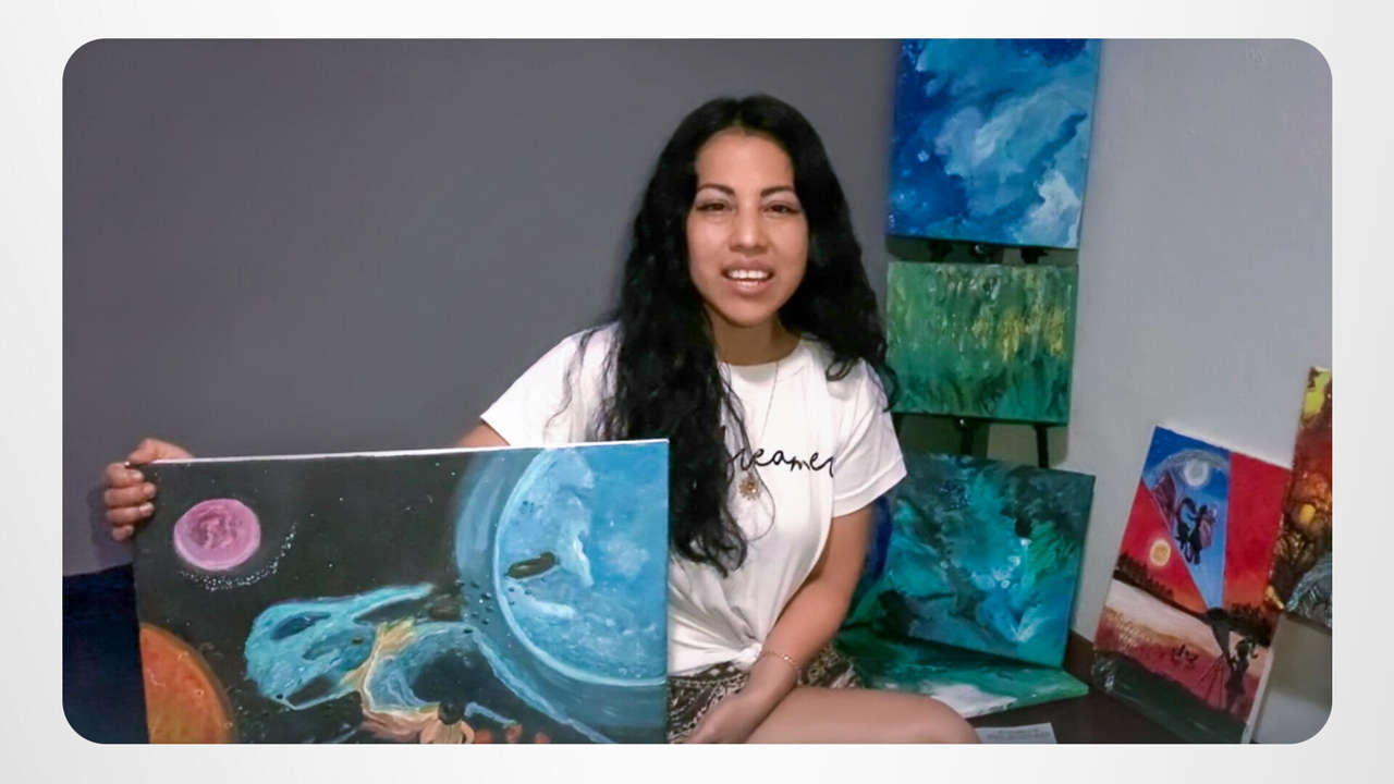 Erika lader fantasien svæve og skaber farverige og fantastiske verdener i sine malerier. Og det, der giver energi til æstetikken hos denne talentfulde ecuadorianske kunstner, er levereglerne i Vejen til lykke.
