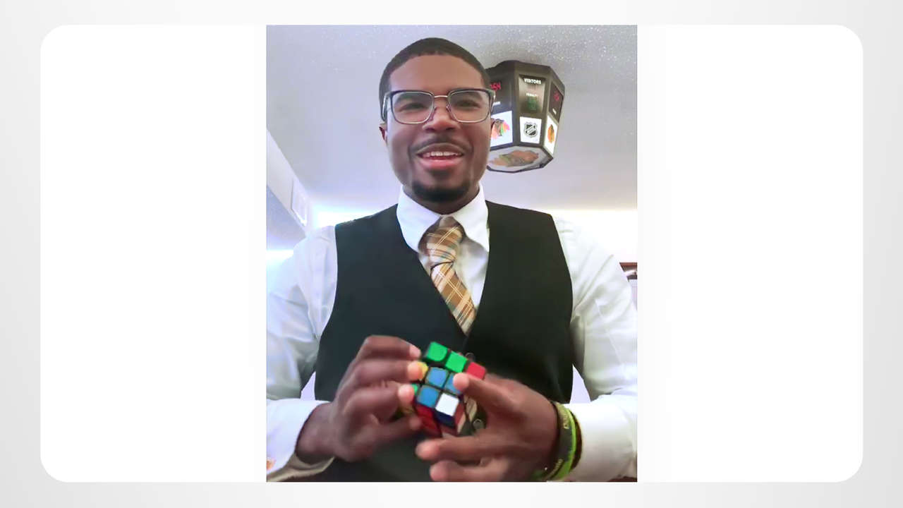 Ver a Garfield resolver su cubo Rubik es como ver una demostración en vivo del precepto “Sé Competente” de El Camino a la Felicidad. Claro, lo puede hacer rápido. Claro, lo puede hacer con una mano. ¡Pero él puede hacerlo con los ojos cerrados! (Bueno, al menos sin mirarlo).