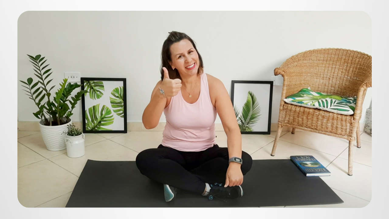 Andreia commence sa journée avec une routine d’étirements revigorants. Elle commence un exercice et laisse son corps faire le reste. Voilà comment elle agit en suivant le précepte « Prenez soin de vous-même » du Chemin du bonheur.