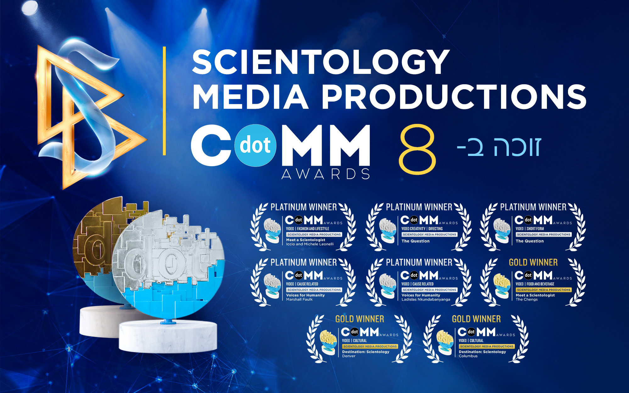 שמונת פרסי dotCOMM האלה מכירים במצוינות במגוון תוכניות וקטגוריות: