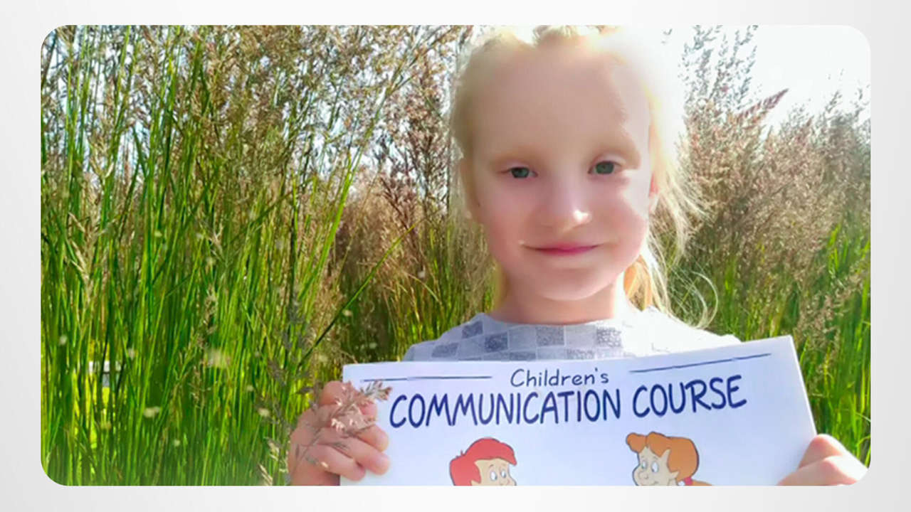 האם זאת פיית היער שעושה את דרכה החוצה מהיער? לא, זו מרתה! והיא נושאת ספר שהוא כמעט בגודל שלה – 'קורס התקשורת לילדים'.
