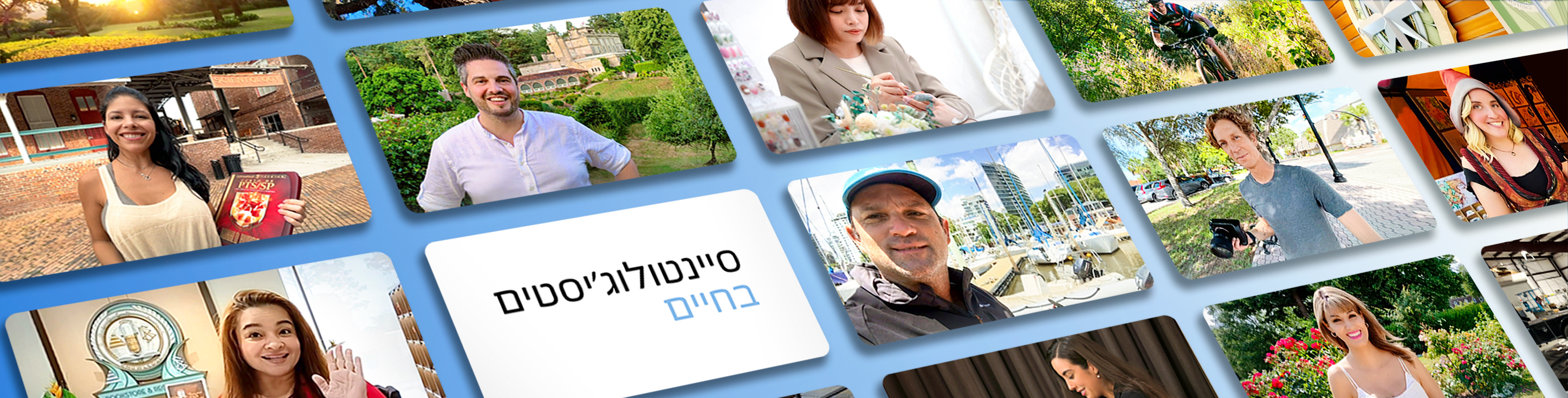 'סיינטולוג'יסטים בחיים' היא סדרה של סרטוני וידיאו שסיינטולוג'יסטים צילמו בעצמם כדי ליצור קשר עם אחרים ברחבי העולם ולתת להם השראה. הפלטפורמה מספקת הצצה אל הדרכים הרבות שאנשים רגילים ברחבי העולם משתמשים בטכנולוגיה של Scientology כדי ללמוד עוד, ליצור עוד ולהמשיך לשגשג בכל ההיבטים של חייהם. ראה איך סיינטולוג'יסטים מיישמים עקרונות של Scientology כל יום, בין אם הם בארגונים המקומיים שלהם, בעבודה או בבית.