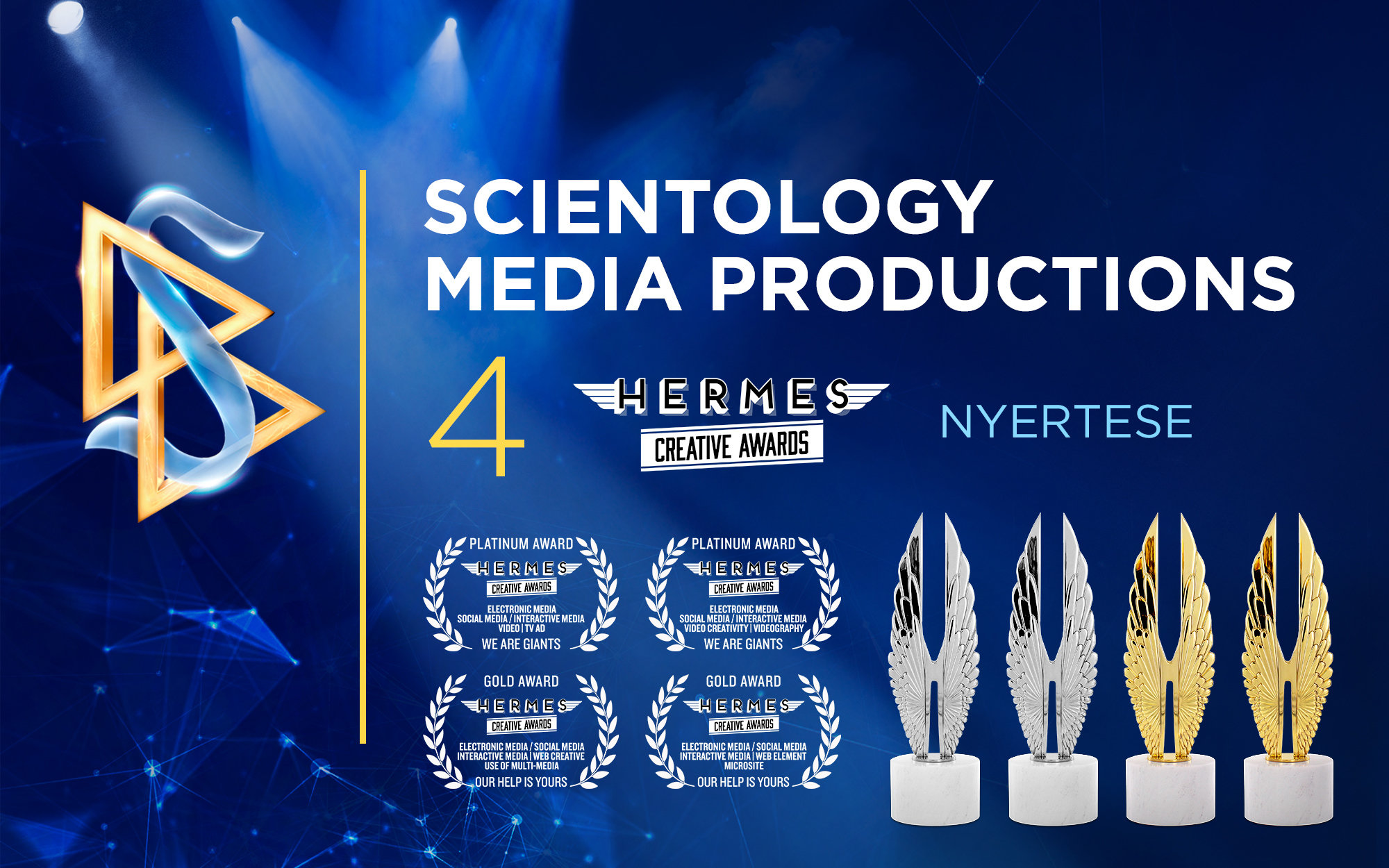 A Scientology Media Productionst négy díjjal ismerték el a Hermes Creative Awardson, amely a marketing- és kommunikációs tartalmak terén elért kreatív kiválóságot elismerő nemzetközi verseny.