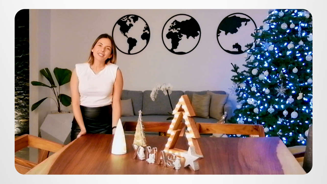 Durante queste festività natalizie, il motivo decorativo di Sabina è minimalista e illuminato. Così, ha esposto alcuni oggetti allegri e luminosi in tutta la sua casa, incluso un Babbo Natale che saluta i bambini che passano vicino. La gioia di creare un impatto con le decorazioni, il design o qualsiasi altro tipo di creazione è un soggetto contenuto in Scientology: I Fondamenti del Pensiero.