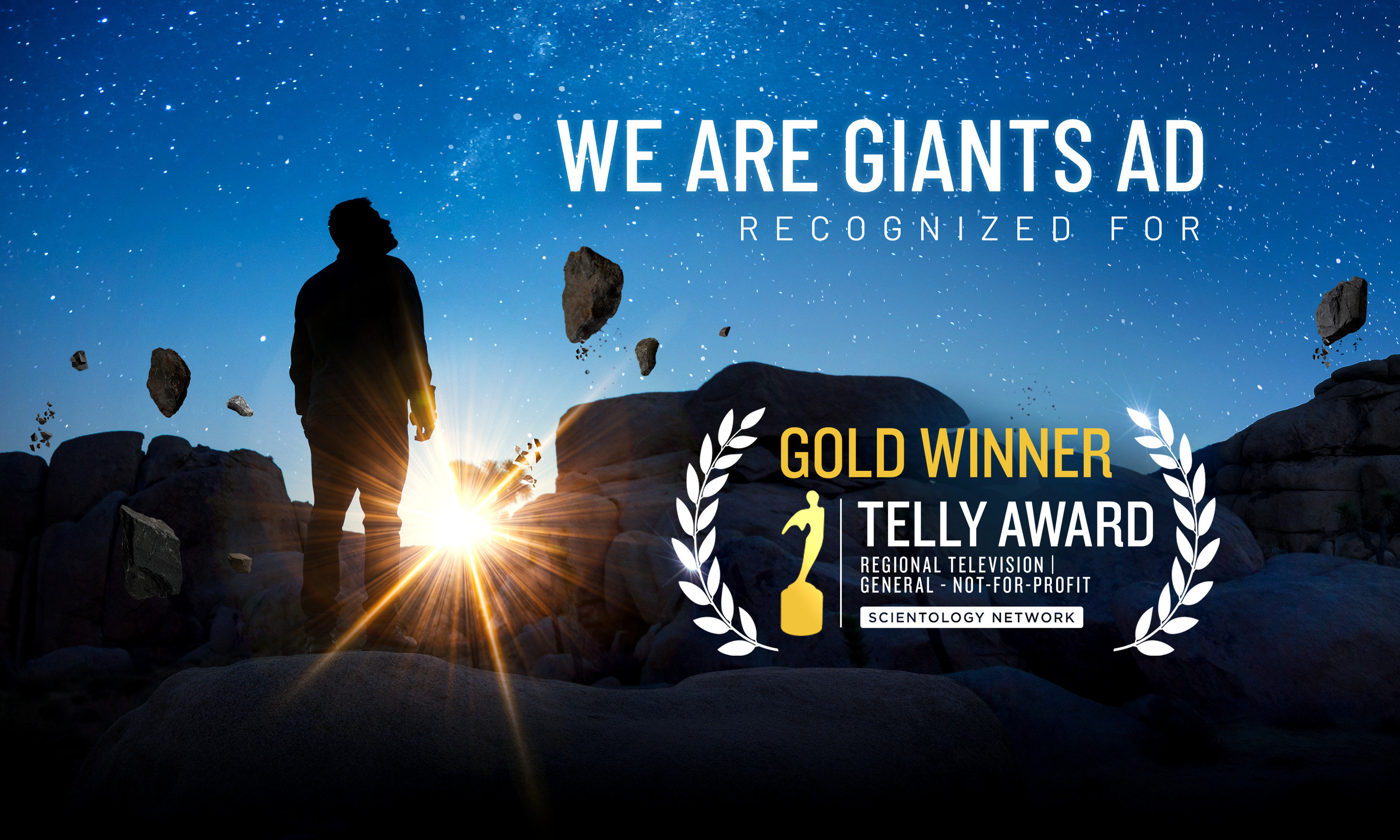 Het ‘We Are Giants’-spotje van de Scientology Kerk blijft onderscheidingen in de wacht slepen. Tijdens de 44e jaarlijkse Telly Awards (een van de meest prestigieuze internationale wedstrijden voor creatieve uitmuntendheid op televisie) won het nog eens vijf prijzen, waaronder één Gold.