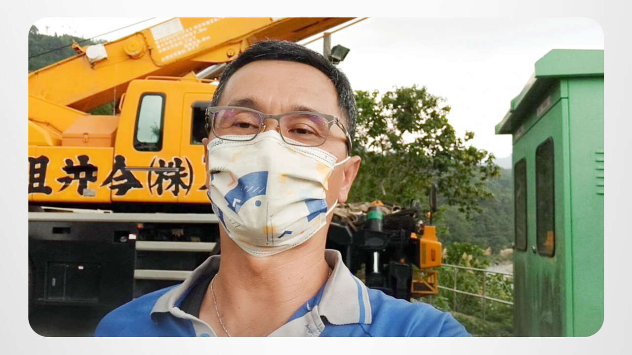 Når det er noe tungt og stort som skal flyttes – som å slippe en pumpemotor ned i en elv – er Jui Da den riktige mannen for jobben. Som kranfører er han klar, villig og i stand til å innta førersetet og gjøre de tunge løftene.