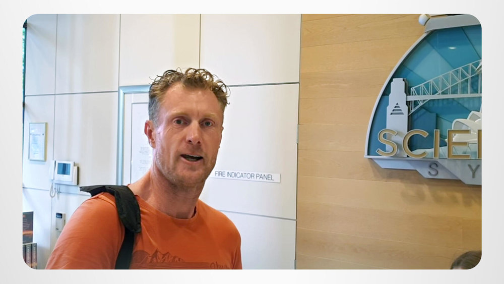 O Lewis entra na Igreja de Scientology de Sydney, pronto para outro dia no Programa de Purificação. Ele está a livrar‑se de venenos e de toxinas acumuladas para limpar o caminho para os ganhos espirituais à medida que sobe a Ponte!