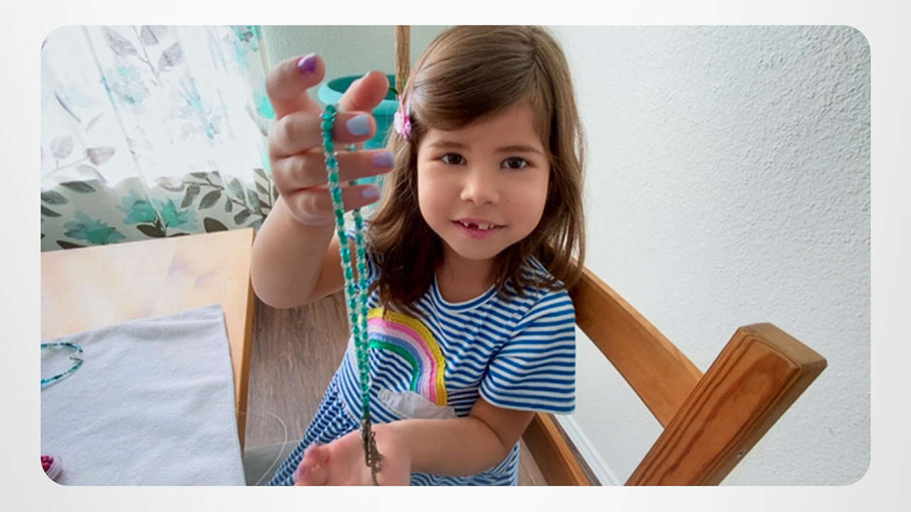 Charlianne is a crafty creator. With just three ingredients to hand—a length of string, a wide assortment of colorful beads and a beautiful imagination—this young jewelry designer makes masterpieces that adorn the necks of friends and family.