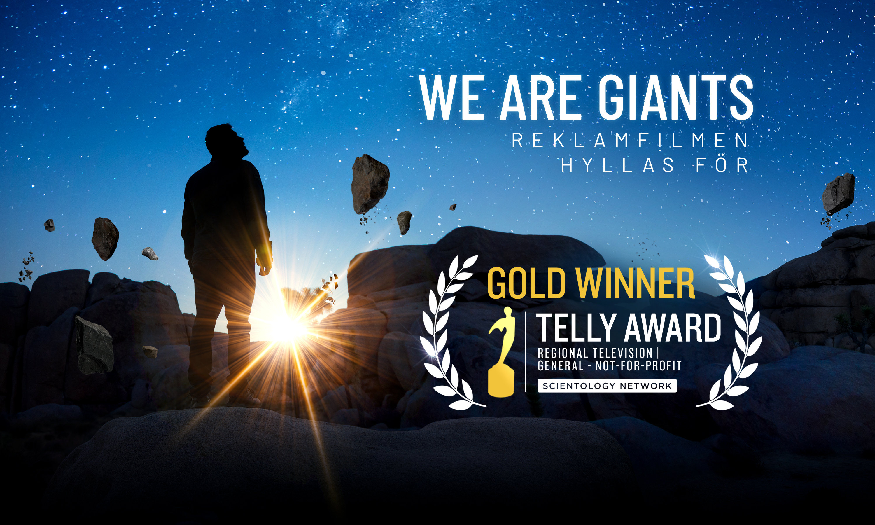 Scientology-kyrkans reklamfilm ”We Are Giants” fortsätter att öka antalet utmärkelser genom att vinna fem till, inklusive en i guld, vid 44:e årliga Telly Awards, en av tv-industrins mest prestigefyllda internationella tävlingar för kreativ förträfflighet.