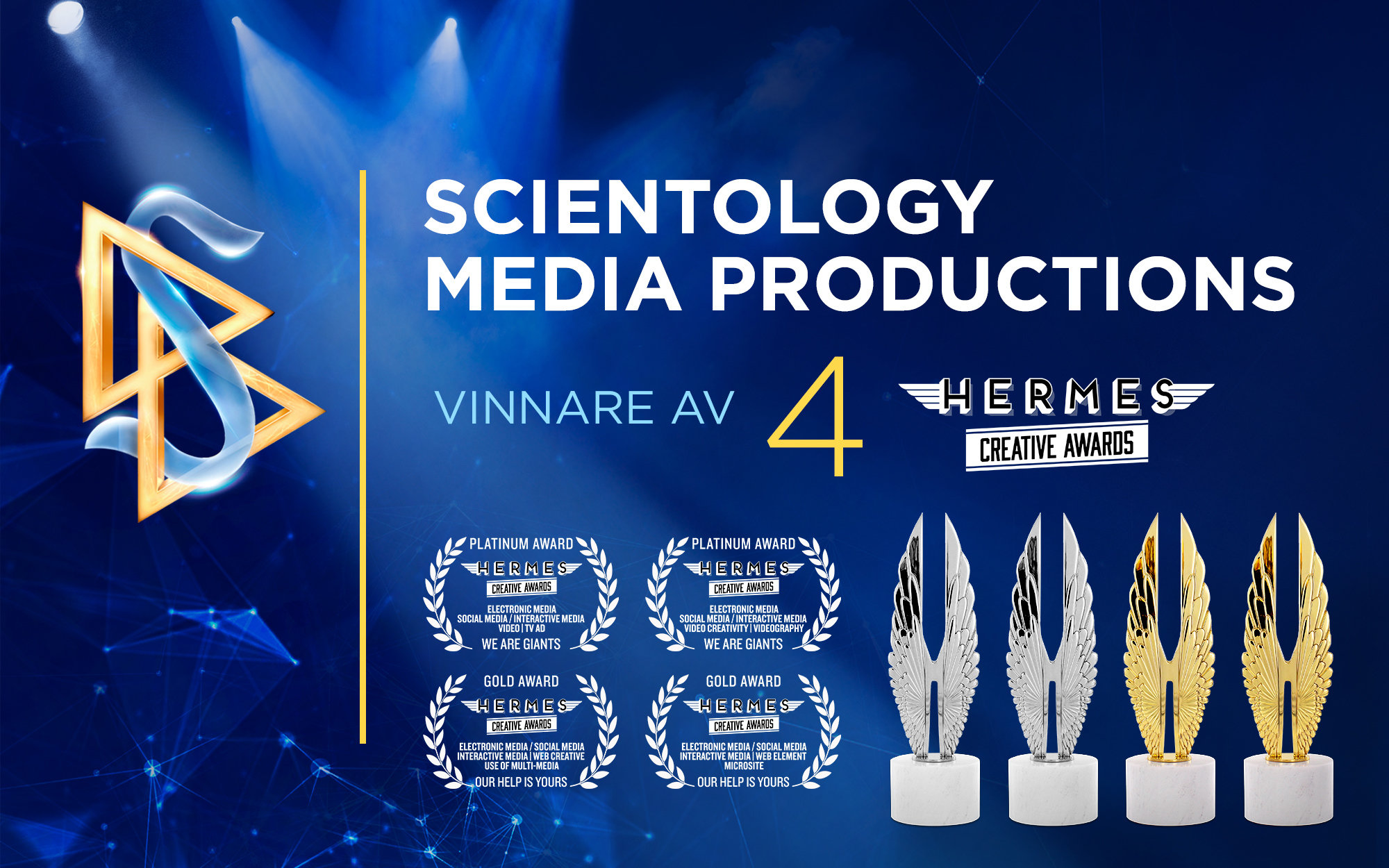 Scientology Media Productions hedrades just med fyra utmärkelser vid Hermes Creative Awards, den internationella tävlingen som hyllar kreativ förträfflighet i marknadsförings- och kommunikationsinnehåll.