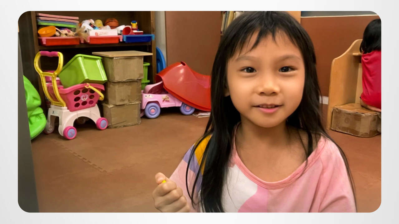 Ping är en ung konstnär som använder sin fantasi för att rita en strålande och vacker regnbåge. Hennes bild och hennes leende räcker för att lysa upp vilket rum som helst – eller humör!