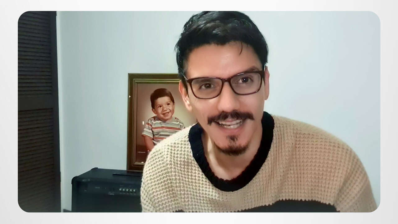 Andres plockar upp sin tolvsträngade gitarr och spelar en del coola bluesriff och går mellan solo och rytmisk shuffle. Att öva på gitarr är hur den San José-baserade skådespelaren och musikern håller sig positiv och produktiv under denna tid.